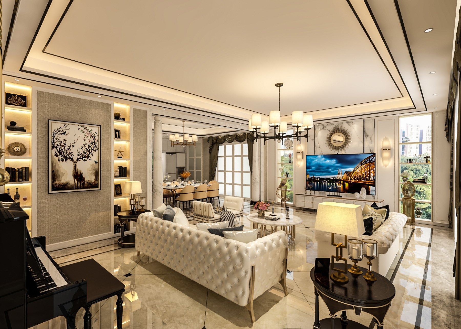 簡(jiǎn)歐帶著一點(diǎn)輕奢的感覺(jué),整個(gè)公共空間線條硬朗,材質(zhì)感比較強(qiáng),私密空間一溫馨舒適為主。同風(fēng)格案例:更多>>